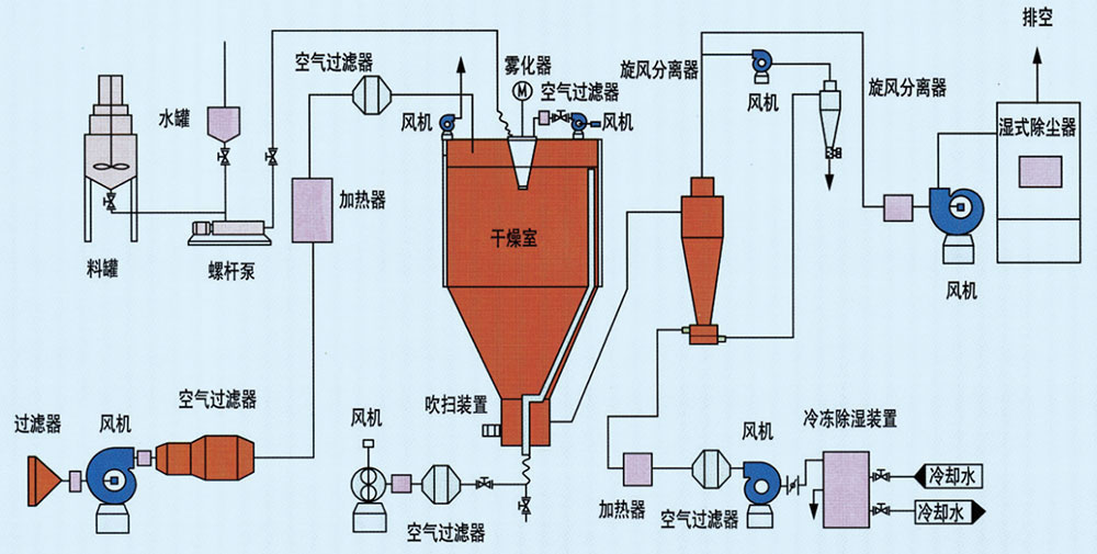 Air heating system: it can be used to provide hot air for drying. The heating system can adopt petroleum, natural gas, steam or electrical heating system.
